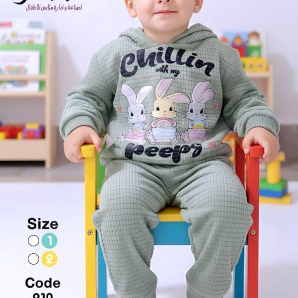 الخامة: ملتون قطن إسفنجي فاخر (Heavy Cotton)، ناعم جداً على بشرة الأطفال ويوفر تدفئة ممتازة مع مظهر "بومبي" شيك.