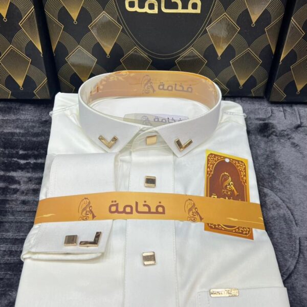 الياقة: تصميم سعودي كلاسيكي يعطي ثباتاً ومظهراً رسمياً.
