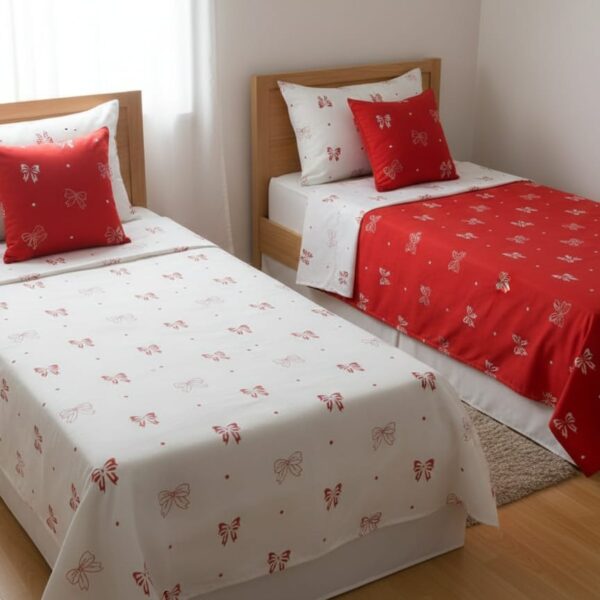 يتميز طقم ملاية ماتشينج قطن 6 قطع بتصميم عملي وخامة قطن مريحة مناسبة للاستخدام اليومي. يوفر الطقم تنسيقًا جميلًا بين القطع ليعطي السرير مظهرًا مرتبًا وأنيقًا، لذلك يعد من المنتجات المطلوبة في محلات المفروشات والبيع بالجملة.