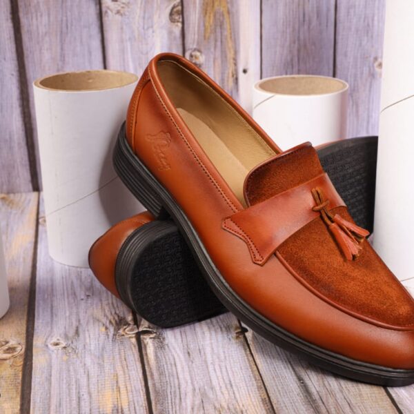 1 كرتونه×حذاء رجالي كلاسيك جلد طبيعي بني