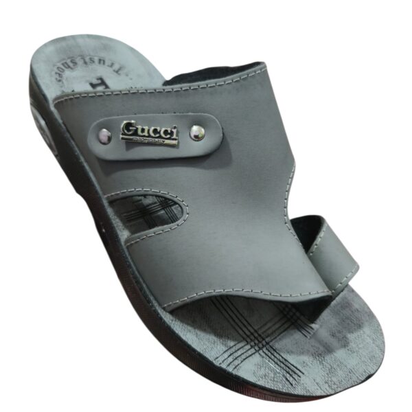 شبشب جلد رجالي رمادي فاخر خامة تركي جلد طبيعي