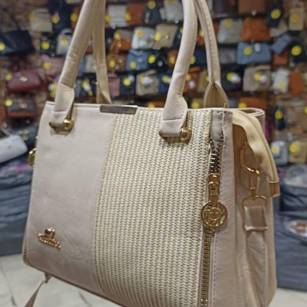 السعر الموضح هو سعر الدستة – مناسب لتجار الجملة والموزعين.شنطة يد بني أناقة كلاسيكية بلمسة ذهبية