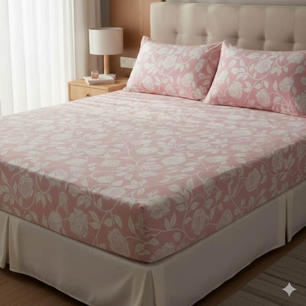 يأتي طقم ملاية استيك مشجر بينك 4 قطع بتصميم عملي وأنيق مناسب لجميع غرف النوم، مع خامة عملية مريحة وسهلة الاستخدام اليومي. هذا الطقم مثالي لمحلات المفروشات والتجار الباحثين عن أطقم ملايات للبيع بالجملة بجودة ممتازة وتصميم متوافق مع جميع الأذواق.