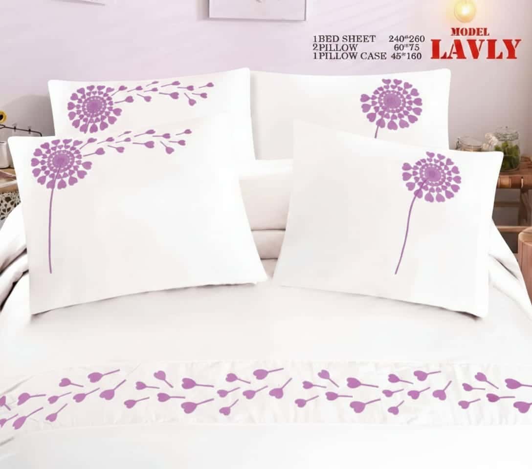 يتميز طقم ملاية لافلي لافندر 4 قطع بتصميم عصري وألوان مميزة تضيف لمسة أناقة وجمال لغرف النوم. يجمع الطقم بين الشكل الجذاب والخامة العملية المناسبة للاستخدام اليومي، مما يجعله خيارًا مناسبًا لمحلات المفروشات والتجار الباحثين عن أطقم ملايات سرير للبيع بالجملة.
