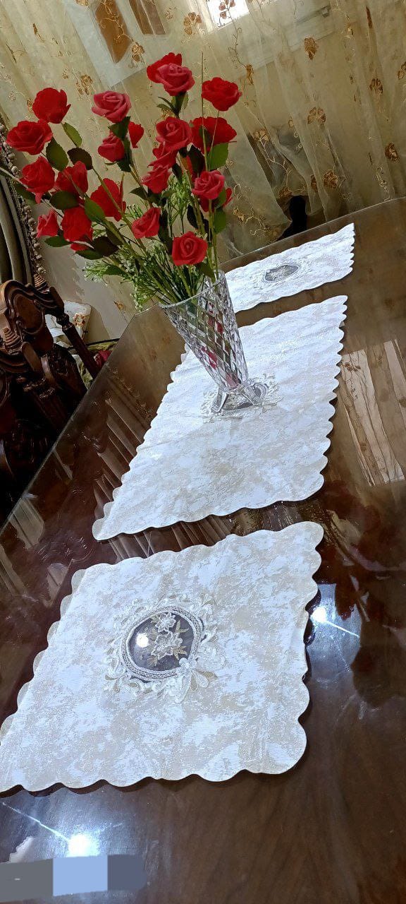 متوفرة بـ لونين أنيقين: أبيض وذهبي زي الصورة تمامًا، تضيف لمسة فخامة ودفء لديكورك. 🟫 مربع – مثالي للطاولات الجانبية أو التسريحة 🪞 تسريحة – يكمّل أناقة غرفة النوم 🧵 بنر – يزيّن الطاولات الطويلة بأسلوب راقٍ 🌀 كوع – لمسة زخرفية مميزة للزوايا 🪟 نيش – يبرز جمال النيش أو البوفيه 📦 الكمية: متاحة حسب الطلبطقم انتريه جلد مقلوب اصفر – فرزاتشي التركي