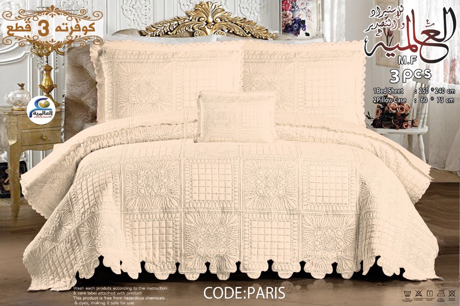 ✅ مفرش كبير + 2 خدادية ✅ خامة قطيفة خفيفة – مناسبة لفصل الصيف ✅ نقوش أنيقة تضيف فخامة لغرفة النوم ✅ صنع في مصر – جودة محلية ممتازة 📦 أقل كمية جملة: نص دستة (6 قطع) السعر حسب الكمية والموديل 📌 متوفر كود PARIS وموديلات أخرى حسب الطلب