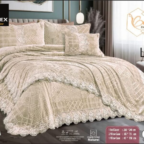 مفرش العروسة القطيفة الفاخر بيج – ماركة Belenda العالمية