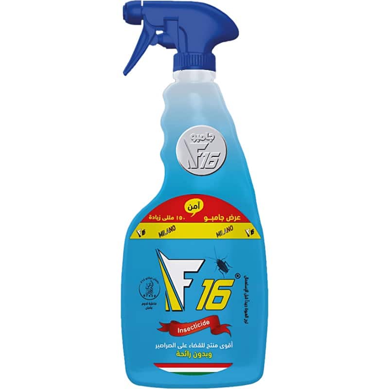 زهقت من الحلول المؤقتة؟ مبيد F16 (حجم 650 مللي) هو الحل الجذري والنهائي للقضاء على الصراصير بضمان وفاعلية مذهلة.