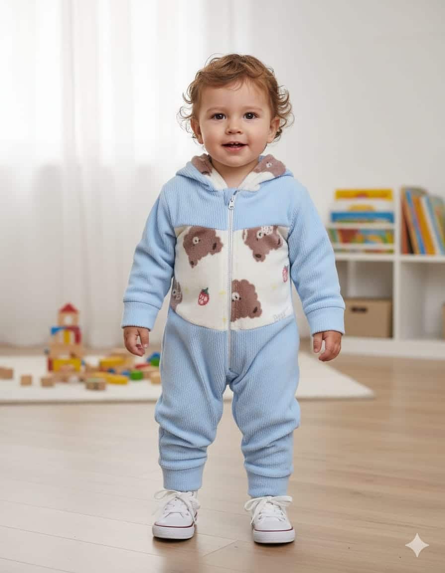 موديل مميز بخامة فرو ناعمة، تصميم دبدوب أنيق، وتلبيس عملي من عمر 6 شهور حتى 18 شهر ✨