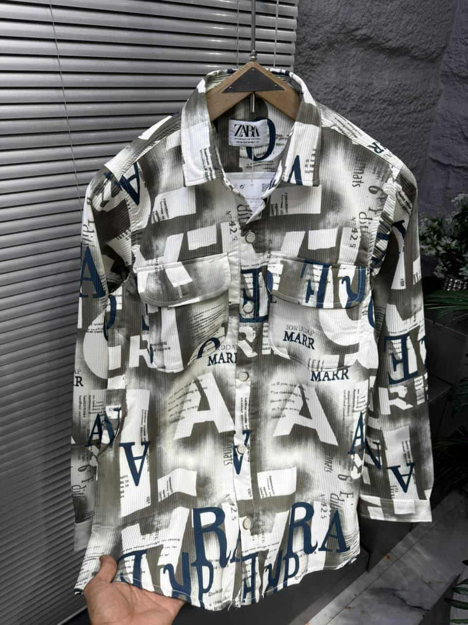 قميص ZARA كوردروي جرافيتي ستايل ستريت واير بخامة فخمة