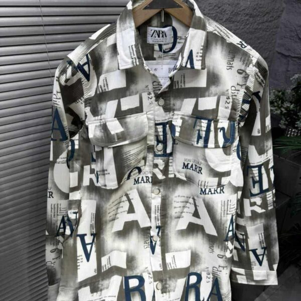 قميص ZARA كوردروي جرافيتي ستايل ستريت واير بخامة فخمة