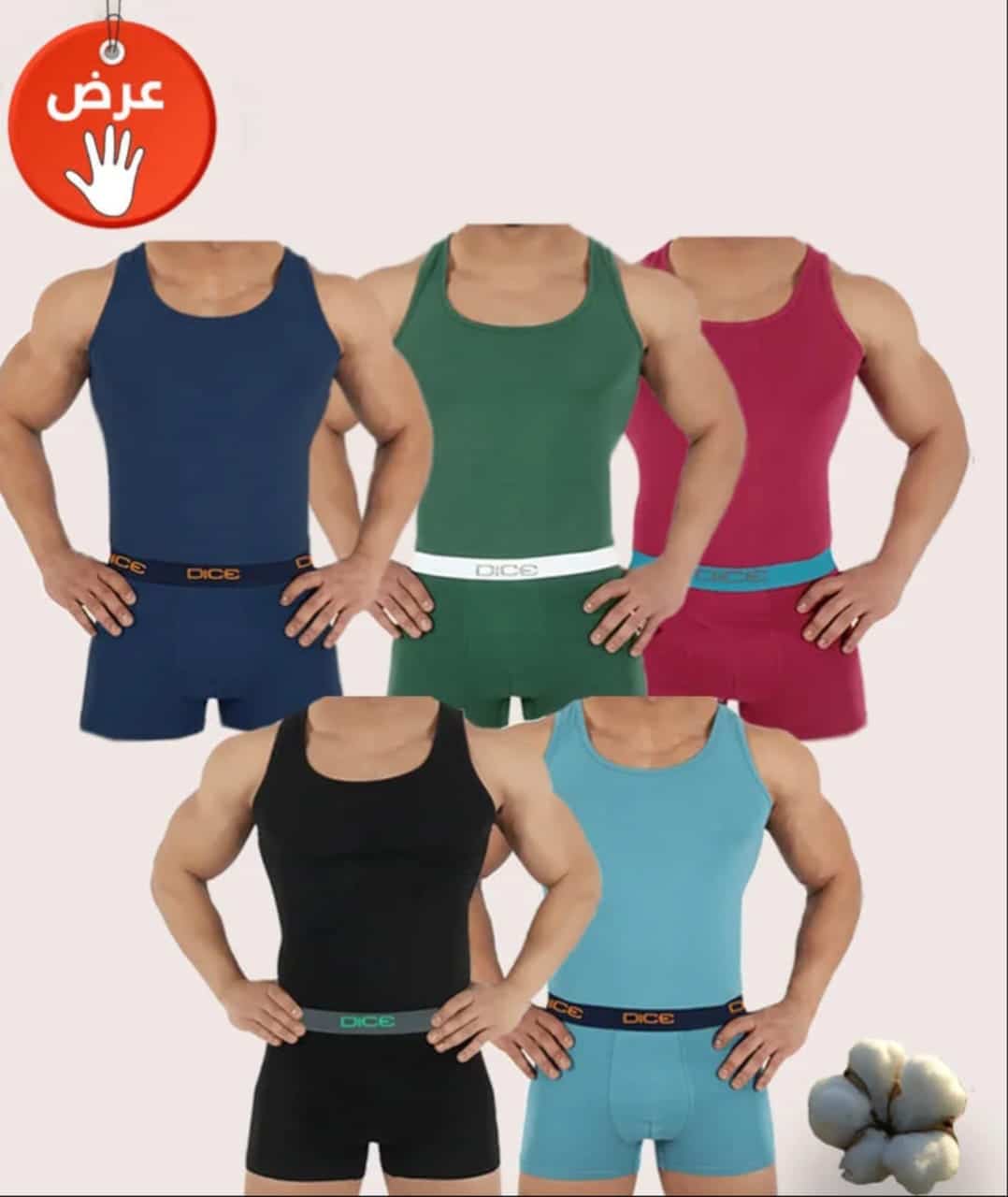 لأصحاب المحلات وتجار الملابس، نقدم لكم طقم دايس (بوكسر + فانلة حمالة) الذي يجمع بين التصميم المريح والخامة المثالية، ليكون الخيار الأول لعملائكم الراغبين في طقم داخلي عملي يدوم طويلًا.