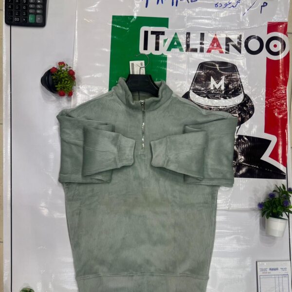 التصميم: ياقة بفتحة "نص سوستة" (Half-Zip) تعطي لمسة كلاسيكية عصرية.