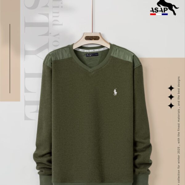 التصميم: ياقة بفتحة "نص سوستة" (Half-Zip) تعطي لمسة كلاسيكية عصرية.