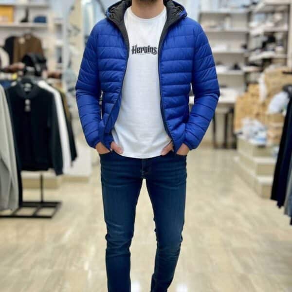 جاكت بليسيه مشحم مبطن فرو ازرق