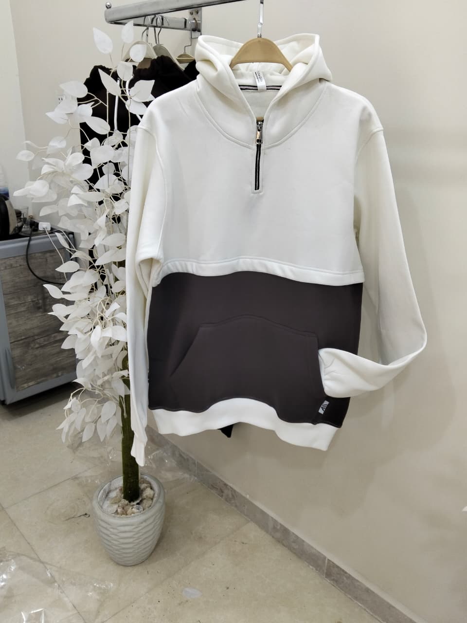هودي ابيض × اسود – خامة قطن اسفنجي معالجة ضد الوِبرا والانكماش