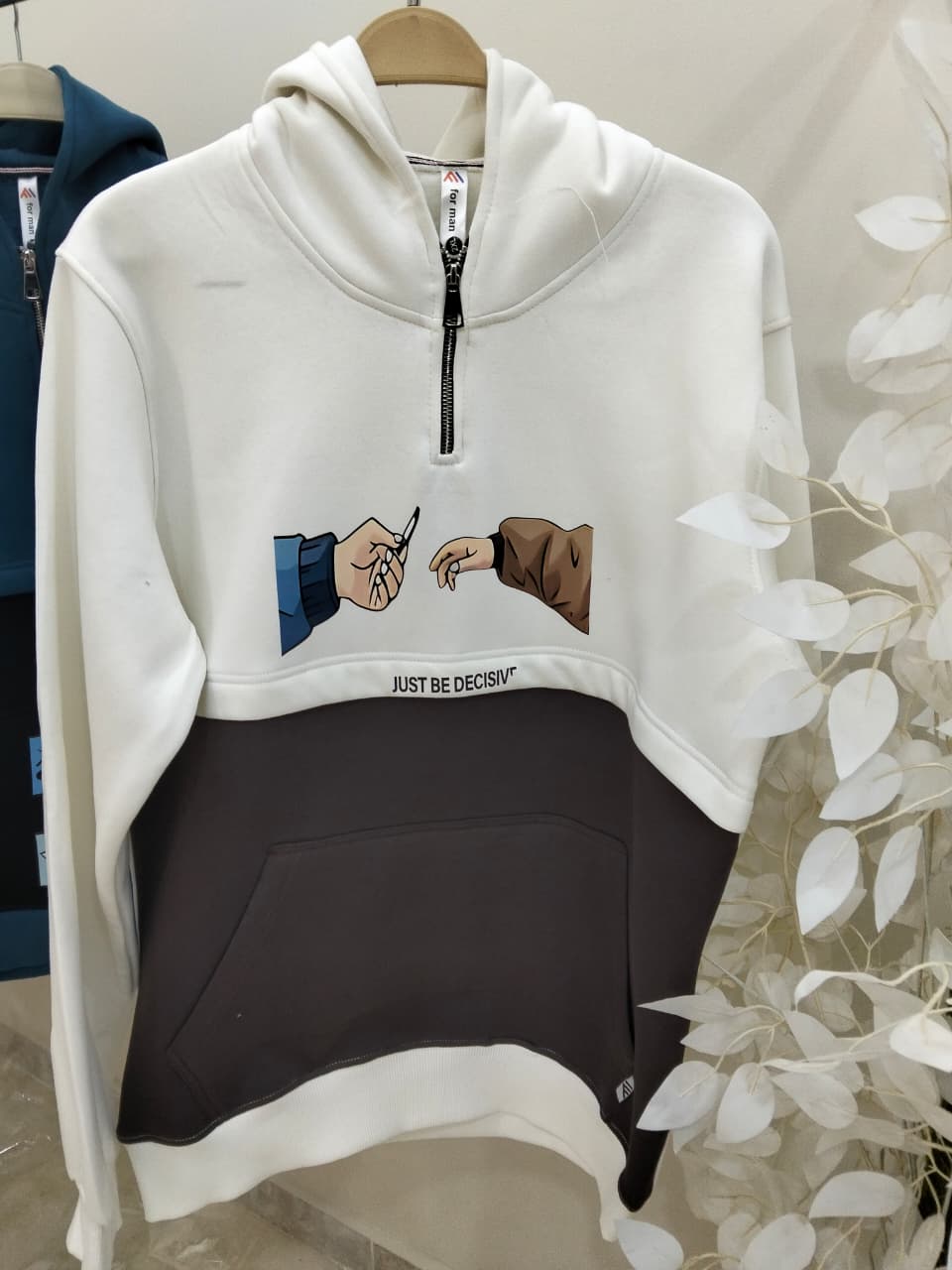 هودي ابيض × زيتى مطبوع