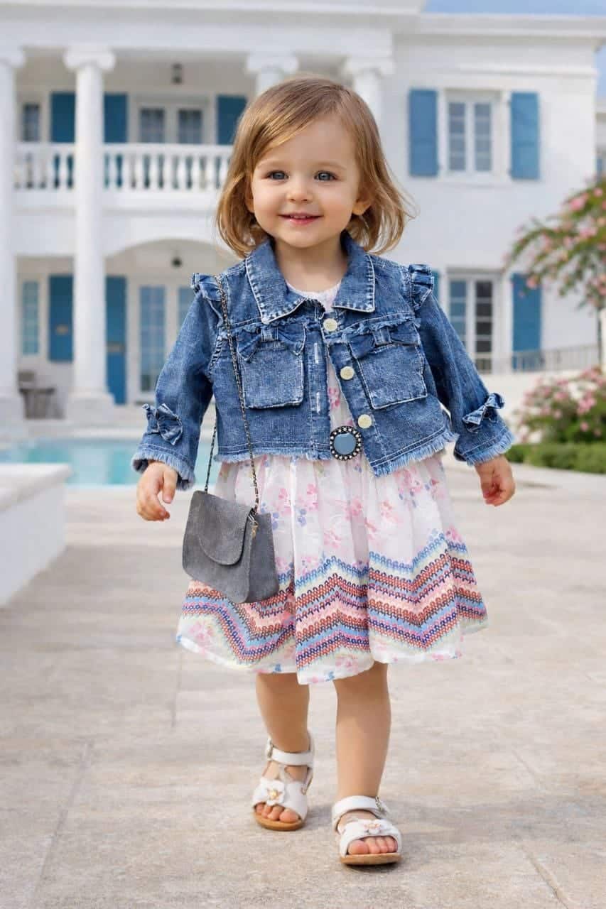 للمحلات المتخصصة في ملابس المواليد والأطفال، نقدم لكم قطعة فنية تجمع بين رقة الفساتين وقوة الجينز. طقم متكامل مصمم بعناية ليمنح الأميرات الصغيرات إطلالة ساحرة ومريحة في الخروجات والمناسبات.