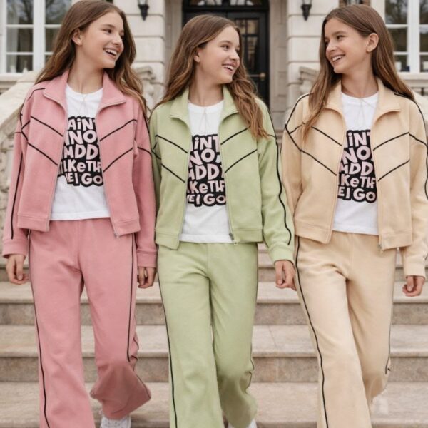 1 دستة × طقم بناتي 3 قطع فاخر خامة بوليت ليكرا