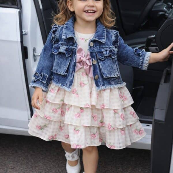 للمحلات المتخصصة في ملابس المواليد والأطفال، نقدم لكم قطعة فنية تجمع بين رقة الفساتين وعصرية الجاكيت. طقم متكامل مصمم بعناية ليمنح الأميرات الصغيرات إطلالة ساحرة ومريحة في الخروجات والمناسبات.