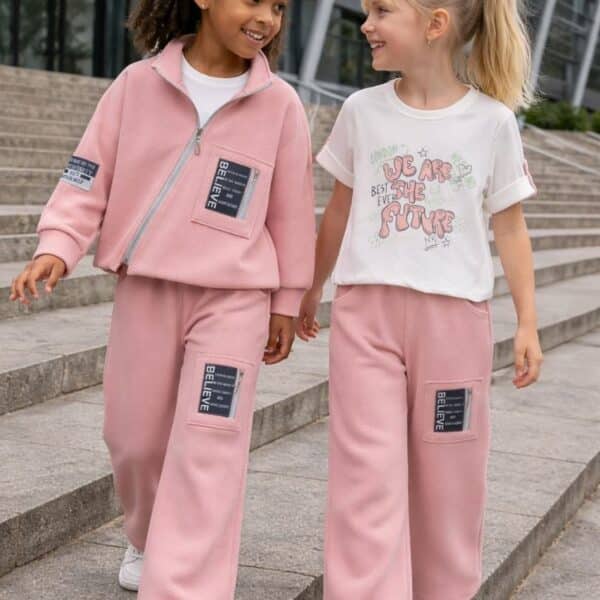 تصميم 3 قطع مريح: يتكون من (جاكيت مبطن مريح + تيشرت كم كفاف + بنطال وايد ليج واسع).