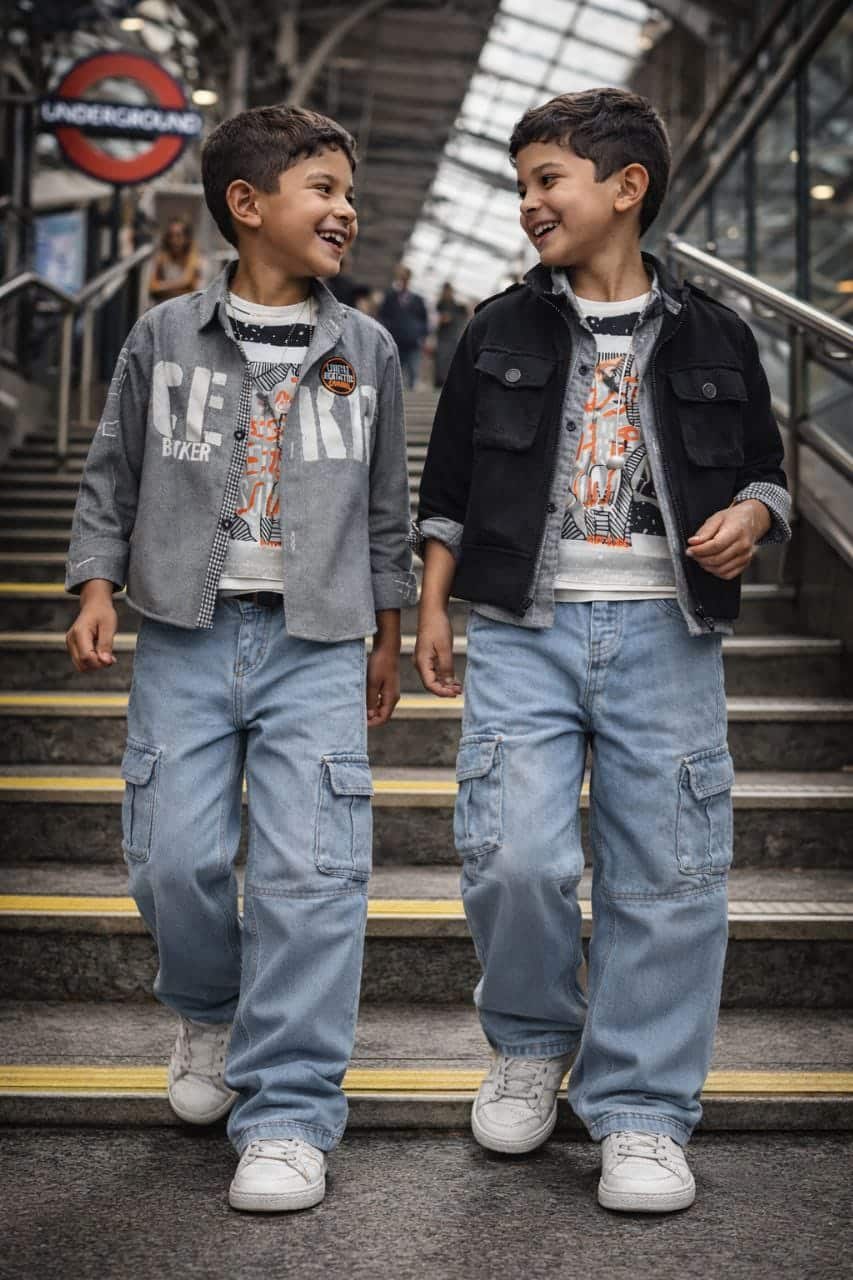 لكل أصحاب المحلات والبراندات المستعدين لموسم العيد، نقدم لكم الطقم الولادي الأكثر طلباً. تنسيق “ماتشينج” يجمع بين هيبة الاستايل العسكري (المارينز) وشياكة الجاكيت الويفر، ليكون الخيار الأول للأناقة والتميز.