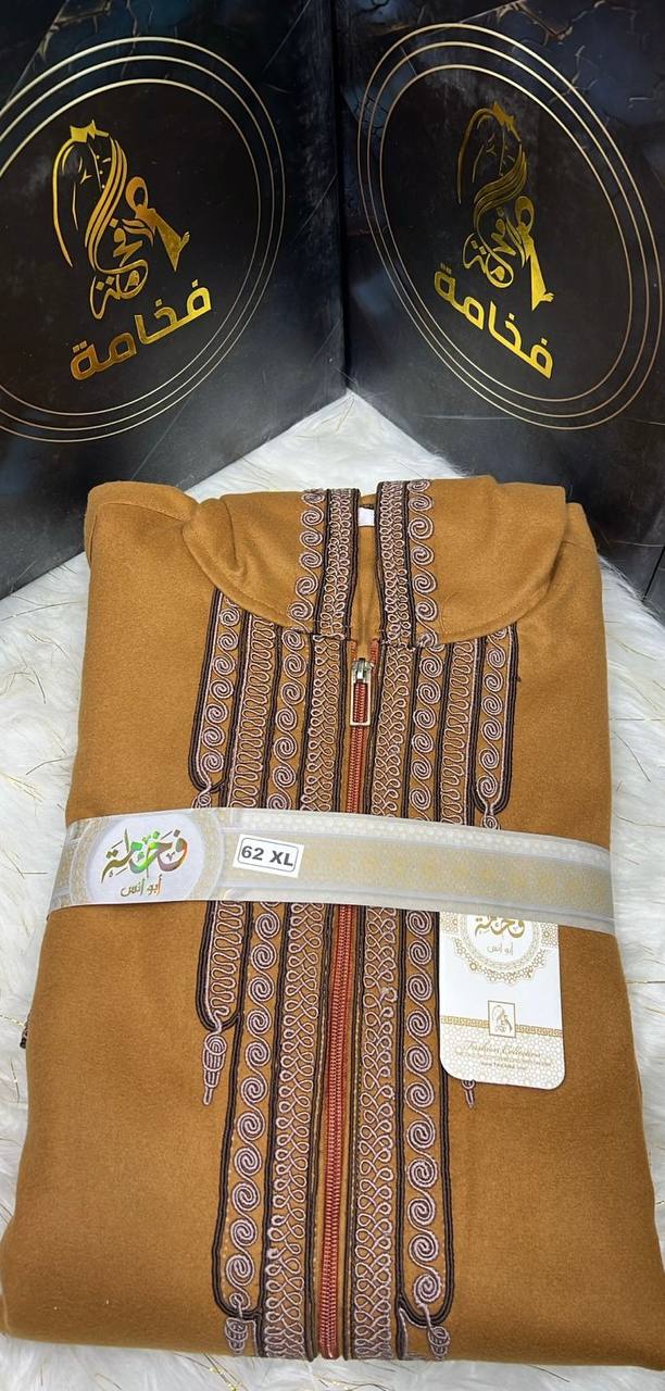 الخامة: جوخ مغربي أصيل (ثقيل وناعم) لضمان أفضل تدفئة.