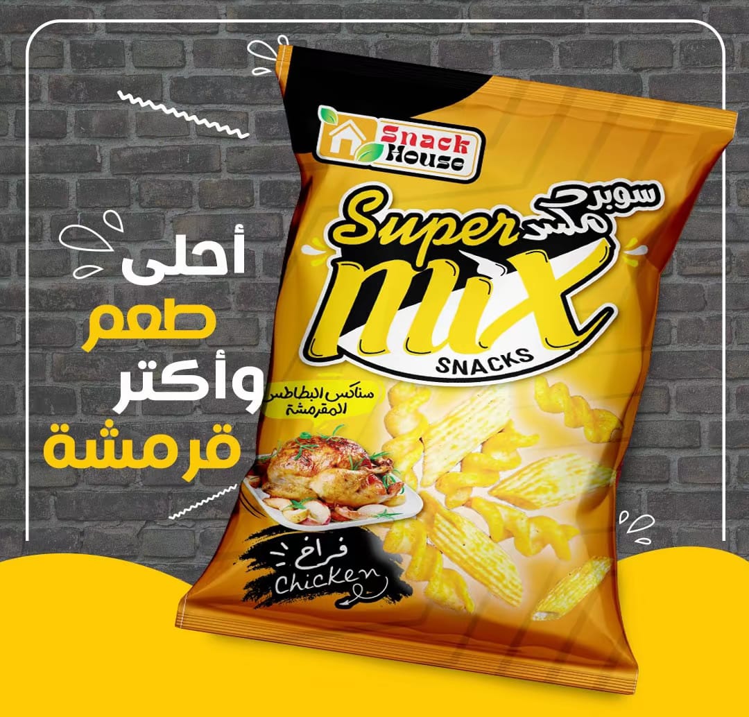 سوبر مكس سناكس مقرمش محبوب عند الأطفال، بنكهات مختلفة تناسب كل الأذواق. منتج سريع الحركة في السوبر ماركت والبقالات ويعتبر من السناكس المطلوبة باستمرار.