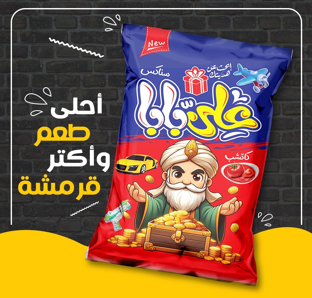✅ تصميم جذاب بشخصية “علي بابا” وسط الكنز والسيارة والطائرة