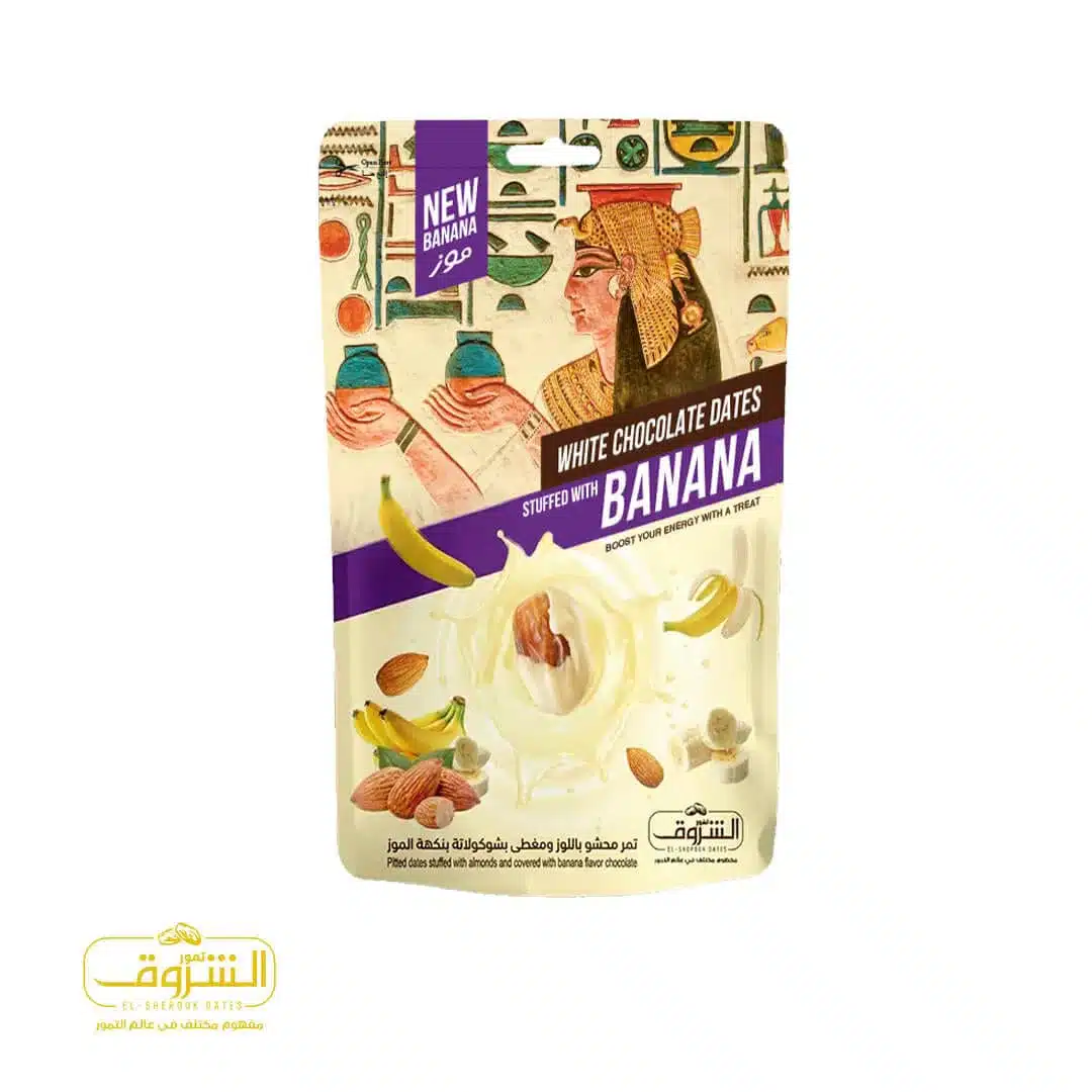 12× كيس تمر محشي بكريمة الموز ومغطى بشوكولاتة بيضاء – 250 جرام