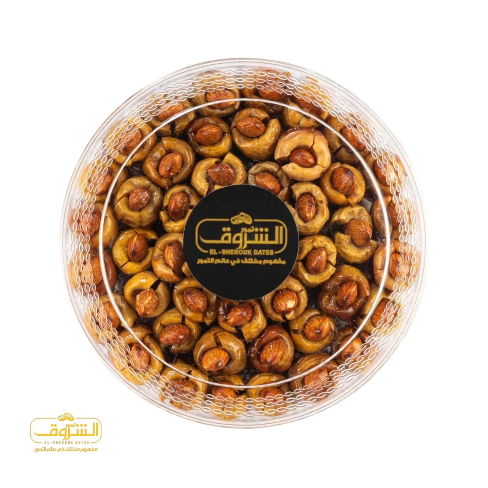 تمر محشو بالكاجو في عبوة أكريلك تحتوي على 40 قطعة.