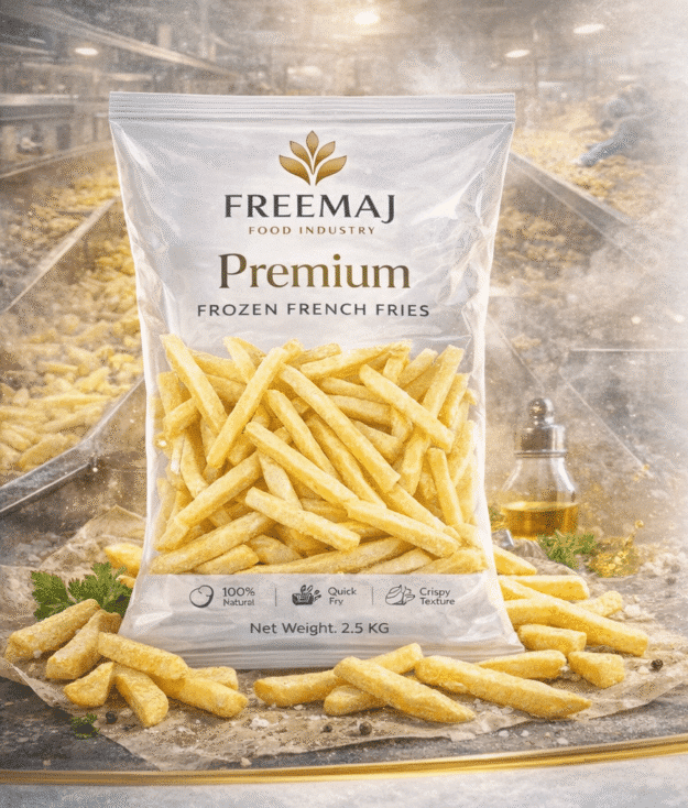 بطاطس نصف مقلية مجمدة عالية الجودة، يتم إنتاجها من أجود أنواع البطاطس الطازجة المختارة بعناية لضمان أفضل طعم وقوام. تمر بعمليات تصنيع متطورة تشمل الغسيل، التقشير، التقطيع، القلي الجزئي، ثم التجميد السريع (IQF) للحفاظ على القيمة الغذائية والطعم الطبيعي.