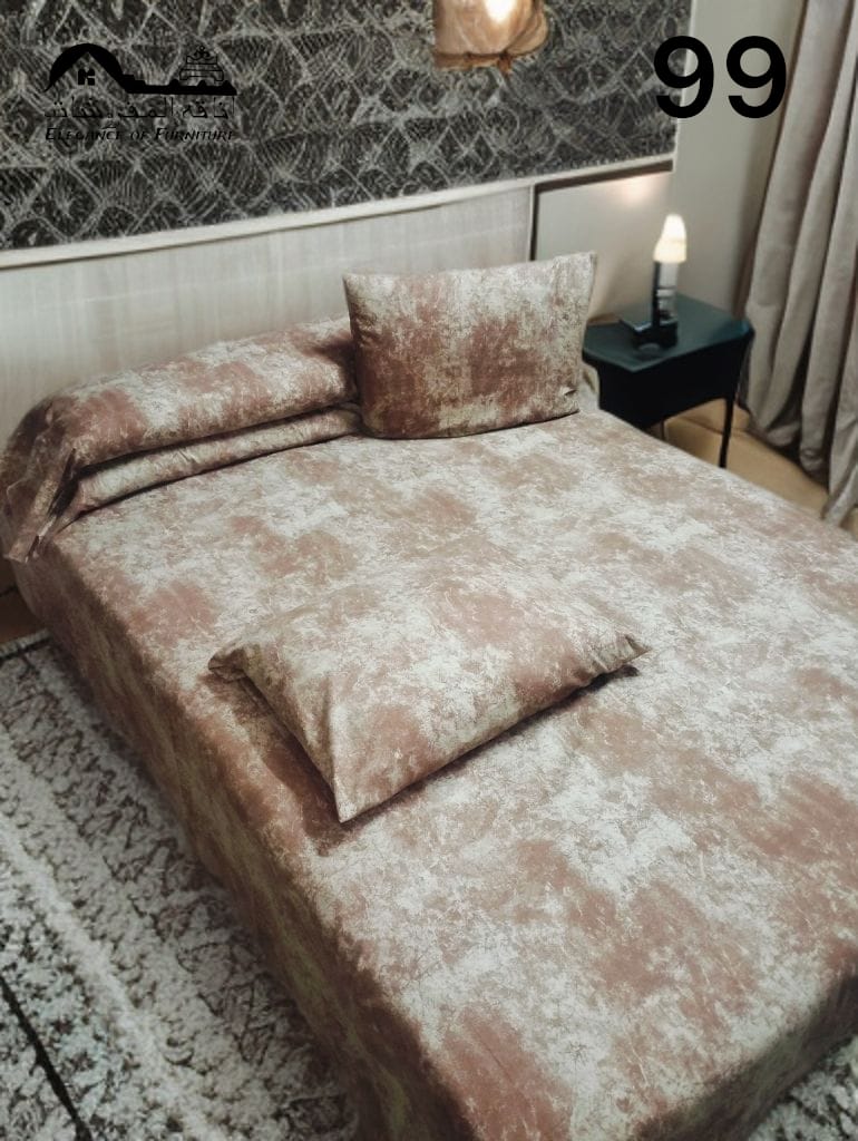 اللون البيج من أكتر الألوان اللي بتدي دفء وهدوء، ومع النقشة المحجرة بيبقى الشكل بسيط لكن فيه تفاصيل خفيفة تخليه مش ممل 👑🛏️