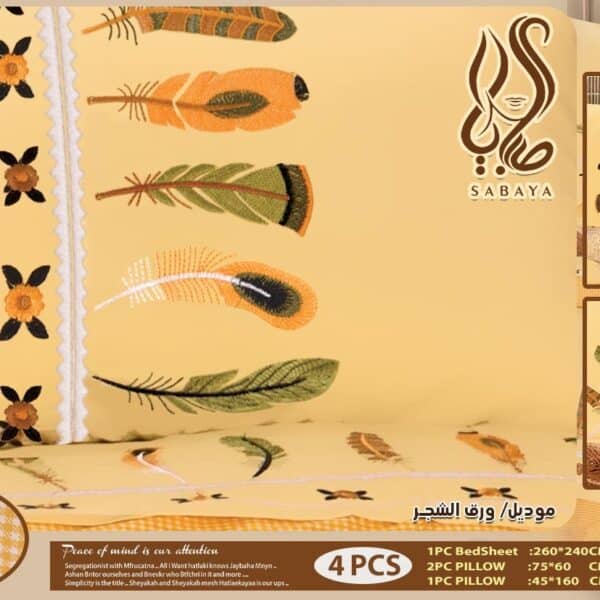 4 قطع أنيقة بتصميم مميز:- ✅ 1 شرشف كبير مقاس 260 × 240 سم