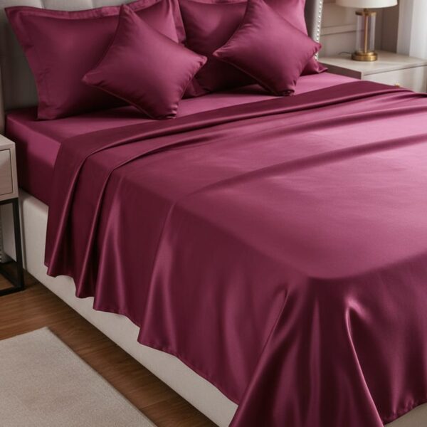 يتميز طقم ملاية ستان تركي نبيتي 4 قطع بمظهر أنيق ولمسة ناعمة تضيف فخامة لغرف النوم. خامة الستان تمنح السرير شكلًا راقيًا وبراقًا، لذلك يعد من المنتجات المميزة والمطلوبة في محلات المفروشات والبيع بالجملة.
