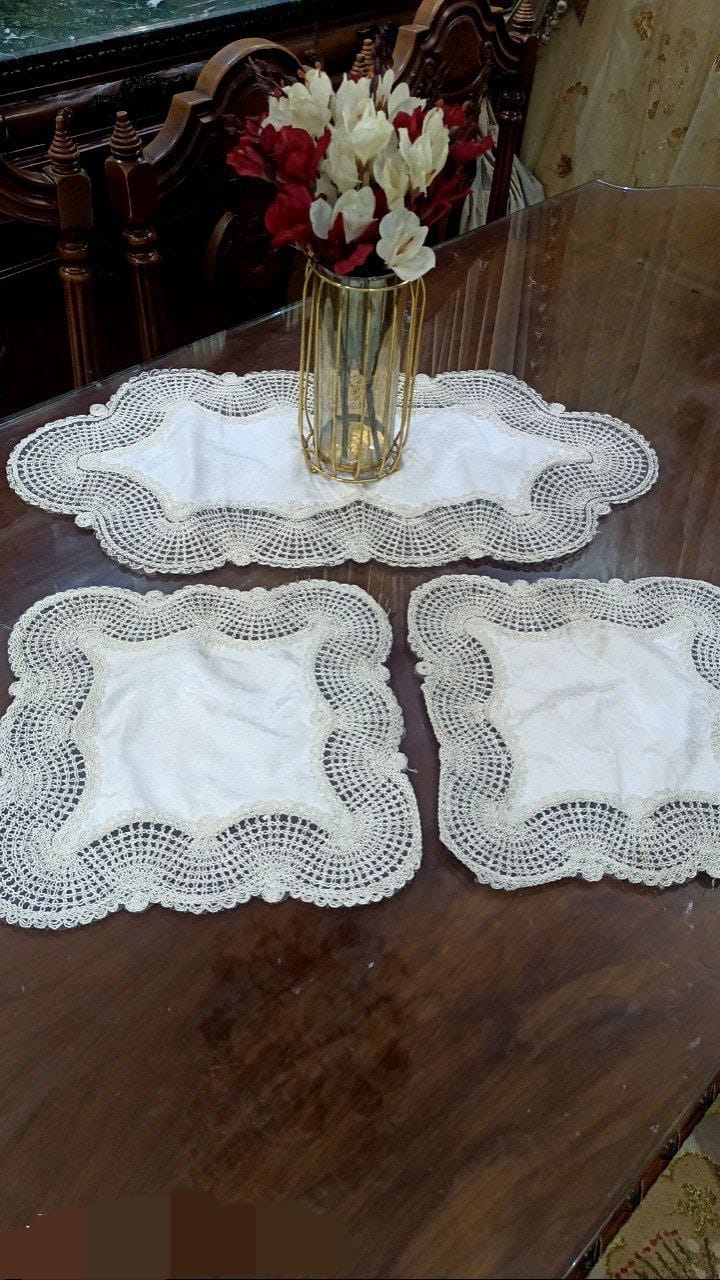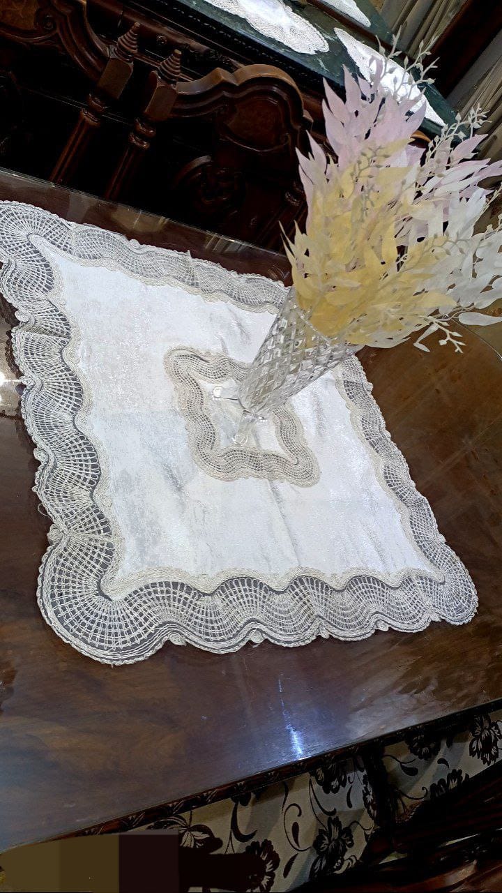 🟫 مفرش مربع أو بيضاوي – مثالي للتسريحة أو الطاولات الجانبية