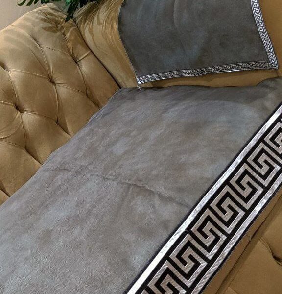 طقم انتريه جلد مقلوب رمادي – فرزاتشي التركي