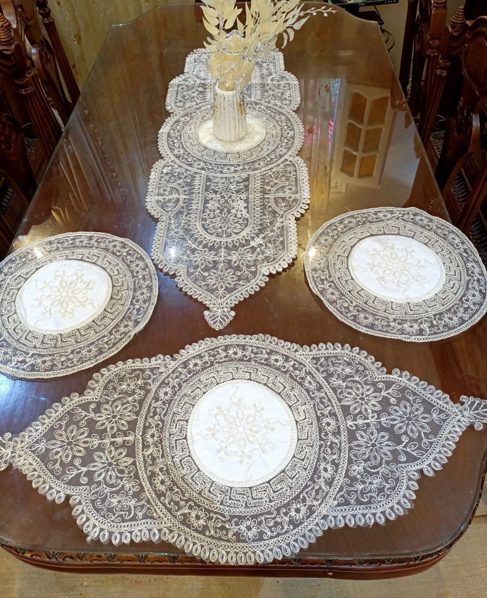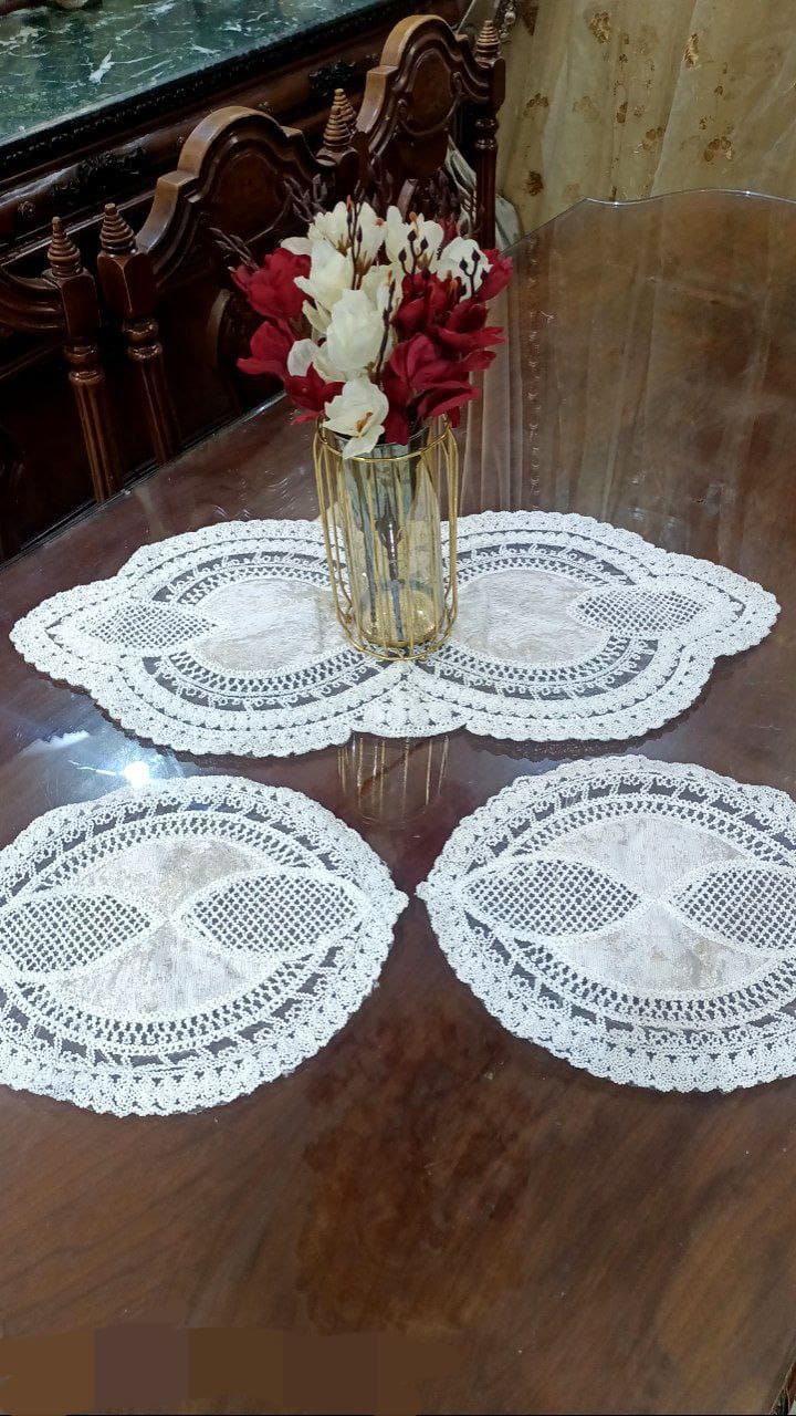 🟫 مفرش مربع أو بيضاوي – مثالي للتسريحة أو الطاولات الجانبية