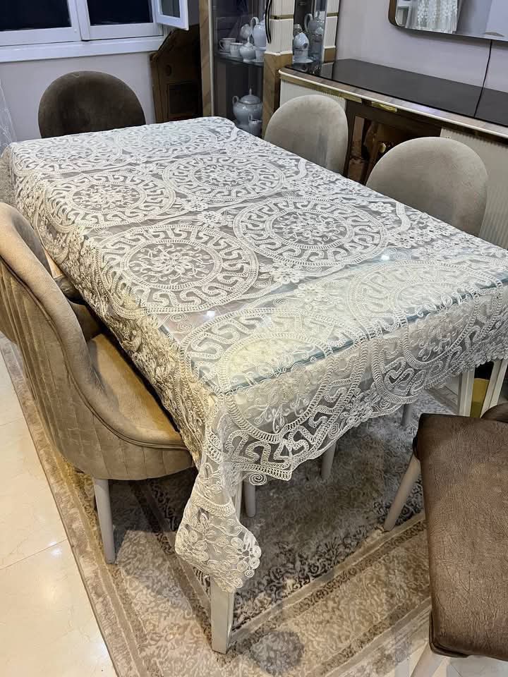 مفرش سفرة سلك شغل يدوي أنيق | مقاس 220×140