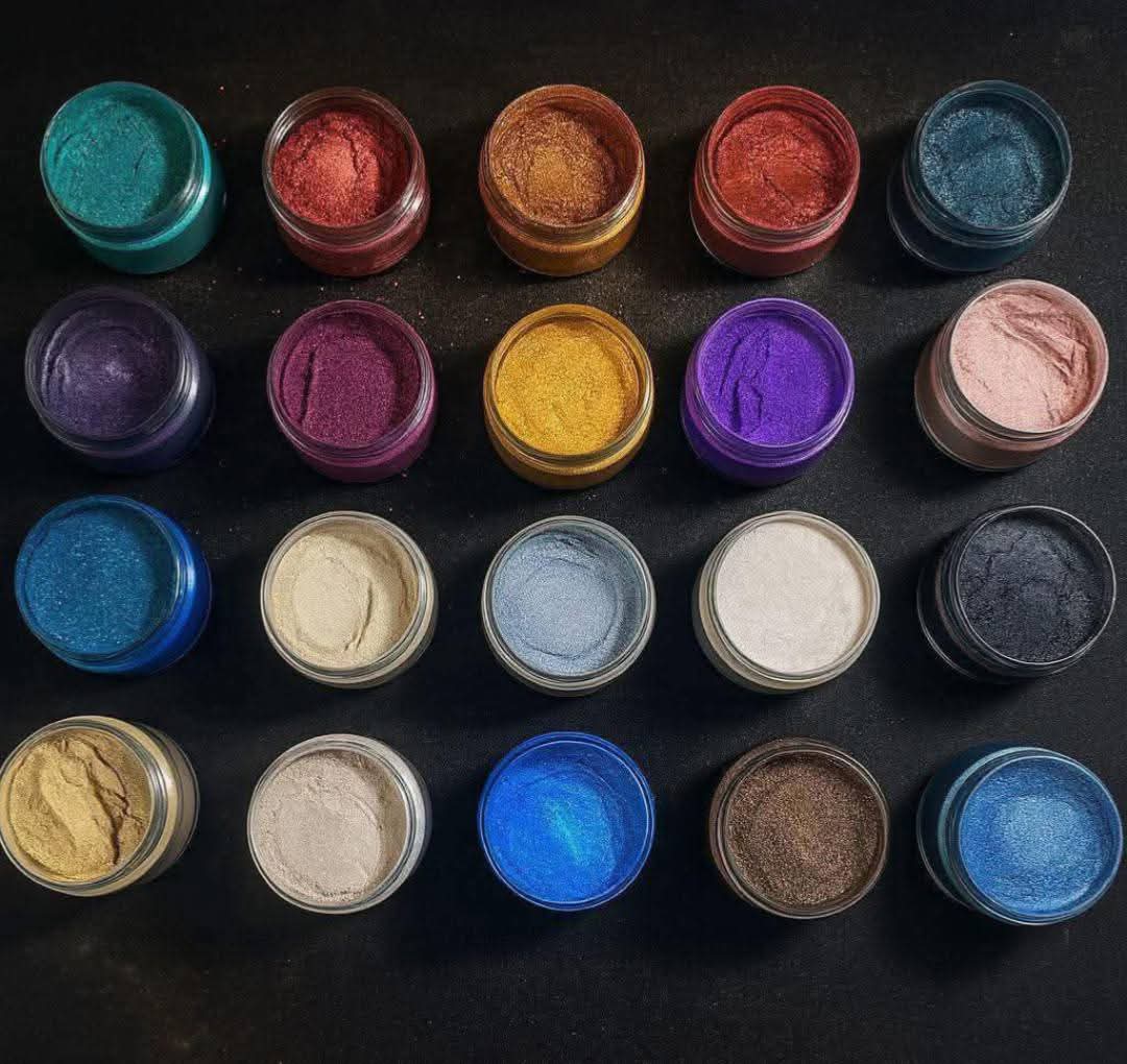 بودرة ألوان مايكا لؤلؤي لامعة – خام كوري أصلي | أعلى جودة  بدون خلط، تعطي تأثير لؤلؤي فاخر وانعكاس ضوئي مميز، متوفرة بجميع الألوان، مناسبة للأعمال الفنية والديكور، بيع جملة.
