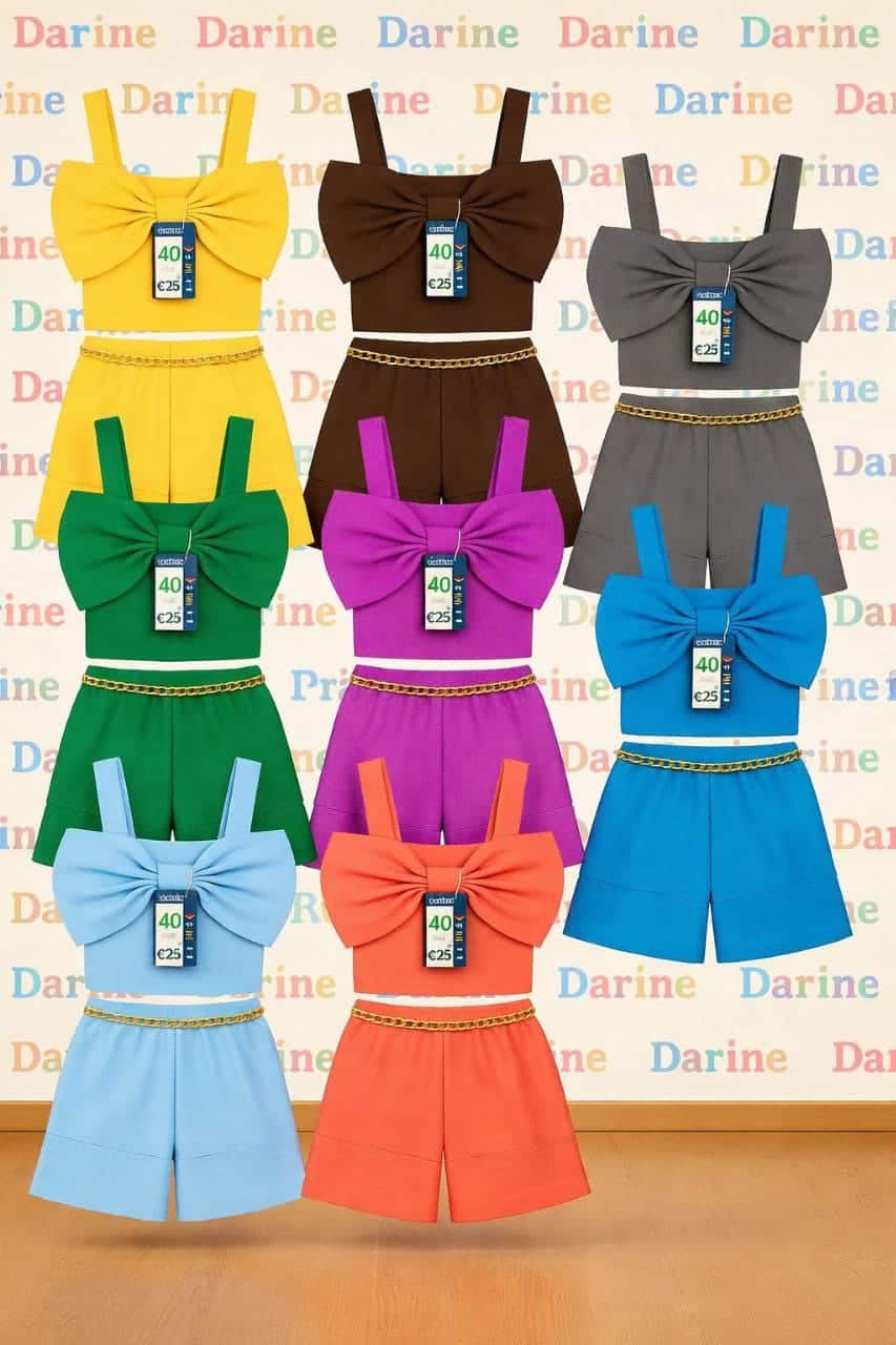 طقم بناتي كتان جيب شورت تصدير – 54 قطعة
