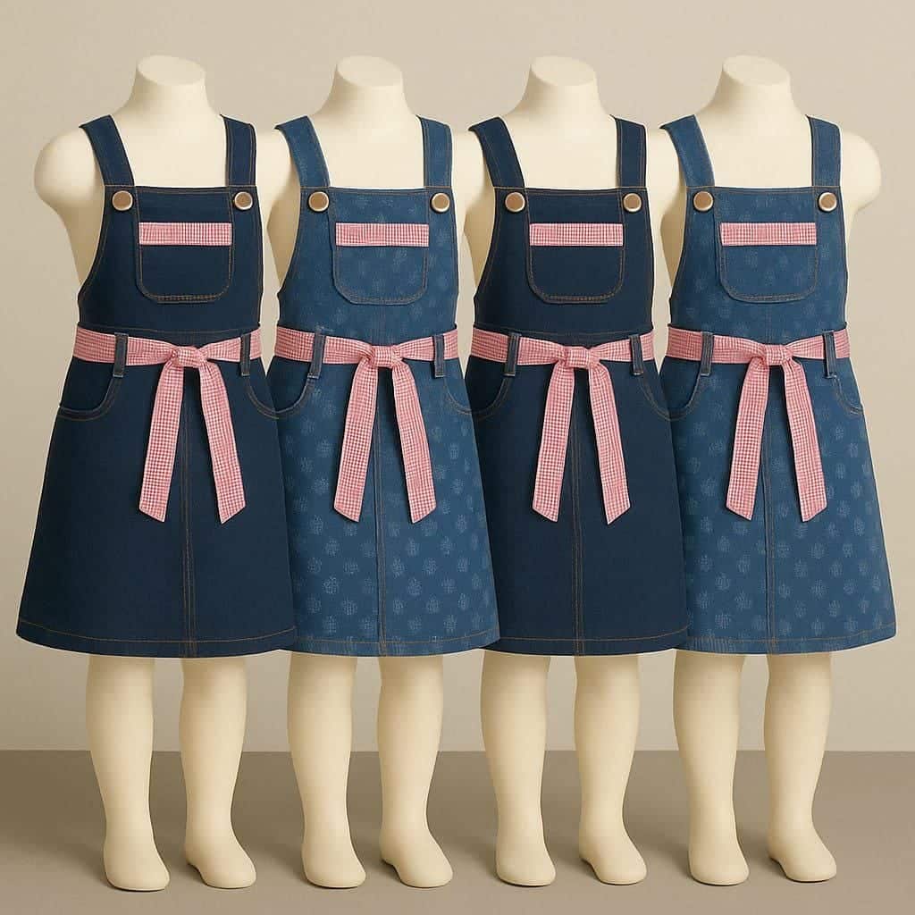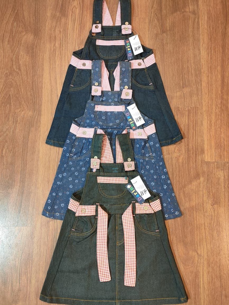 فستان سالوبيت أطفال جينز – 18 قطعة جينز مستورد قطن 100% تصدير، تصميم عصري مريح، مناسب من 4 إلى 12 سنة، متاح بالجملة أقل كمية 18 قطعة.