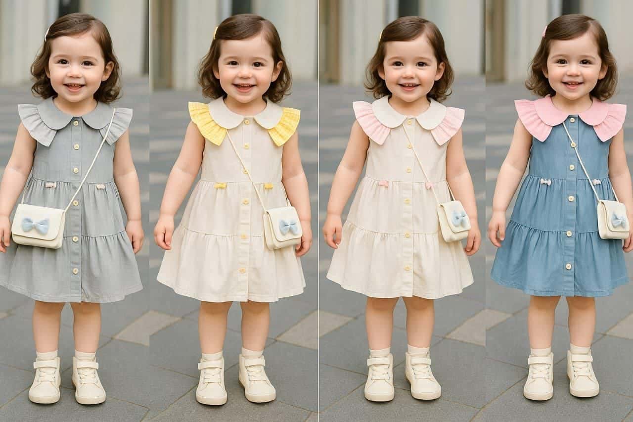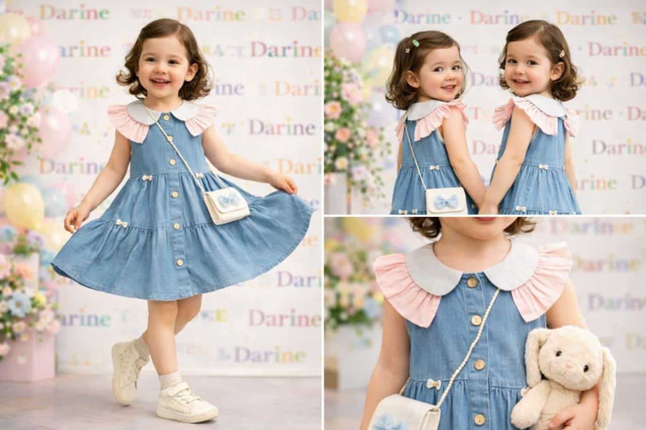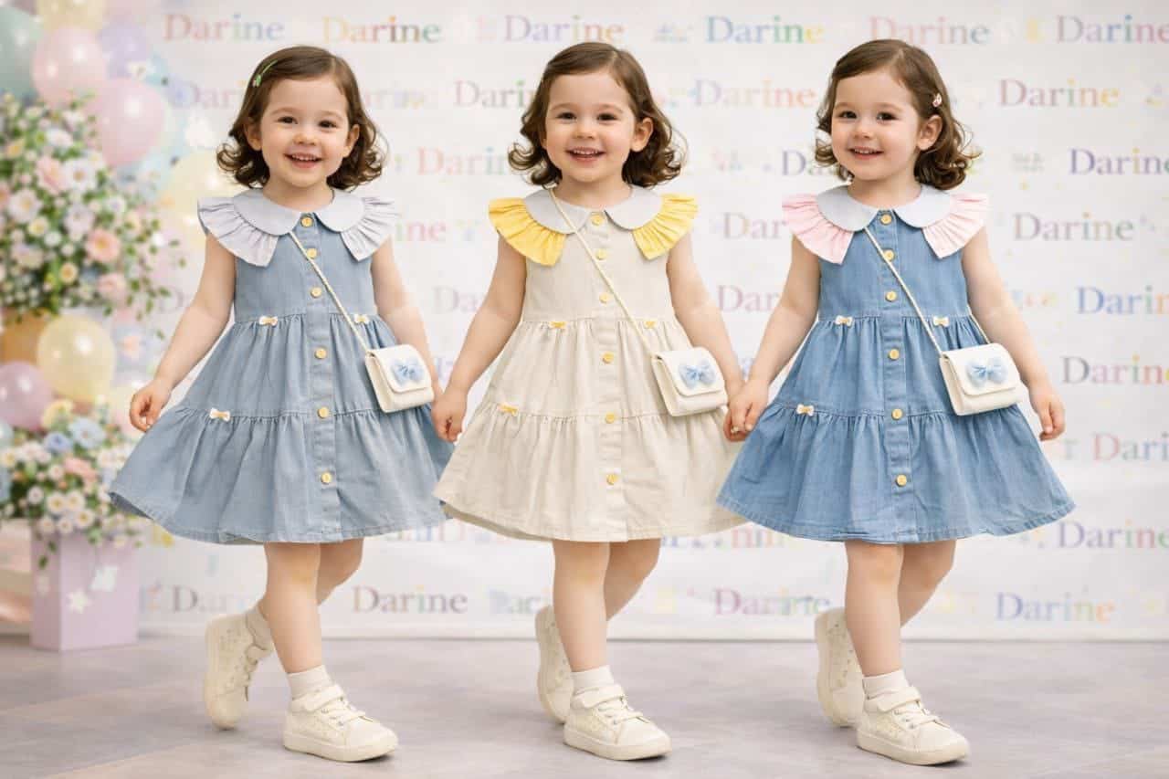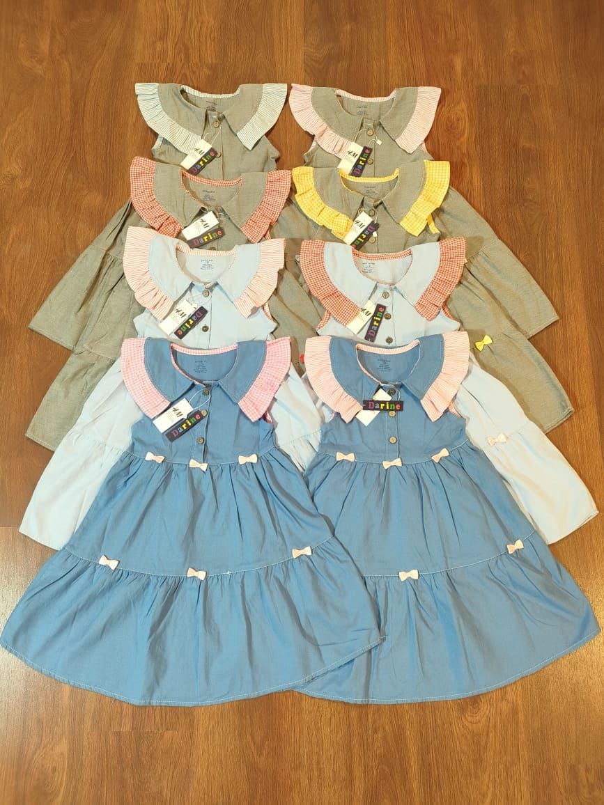 فستان أطفال جينز خفيف تصدير – 55 قطعة فستان أطفال جينز خفيف خام مستورد تصدير قطن 100%، تصميم عصري ومريح، مناسب من 4 إلى 12 سنة، متاح للبيع بالجملة أقل كمية 55 قطعة.