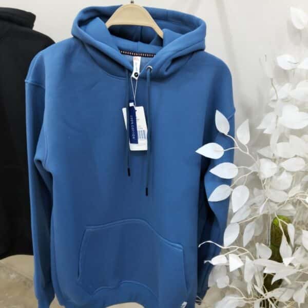 هودي ازرق × اسود – خامة قطن اسفنجي معالجة ضد الوِبرا والانكماش