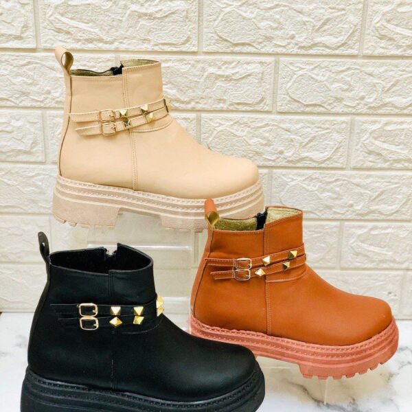 📌 الموديل: R/303 📏 المقاسات المتوفرة: من 37 إلى 41 🎨 الألوان: بيج – بني – أسود 🔸 تصميم أنكل بكعب منخفض 🔸 ديكور معدني أنيق مع مسامير حول الكاحل 🔸 سحاب جانبي لسهولة اللبس 🔸 نعل مريح – مثالي للعمل والخروج 💰 السعر الموضّح مقابل 10 قطع فقط 📦 أقل كمية للطلب بالجملة: 10 قطعبوت R/302 – أناقة الشتاء تبدأ من التفاصيل